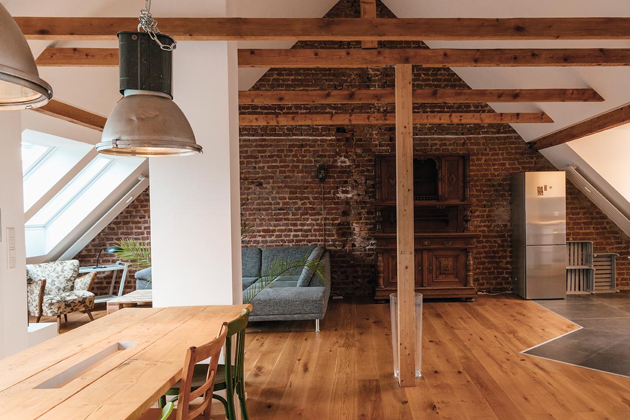 „Solche Böden bringen urbanes Flair in den Raum und sind gleichzeitig pflegeleicht und langlebig“, sagt Grote in Marklohe.